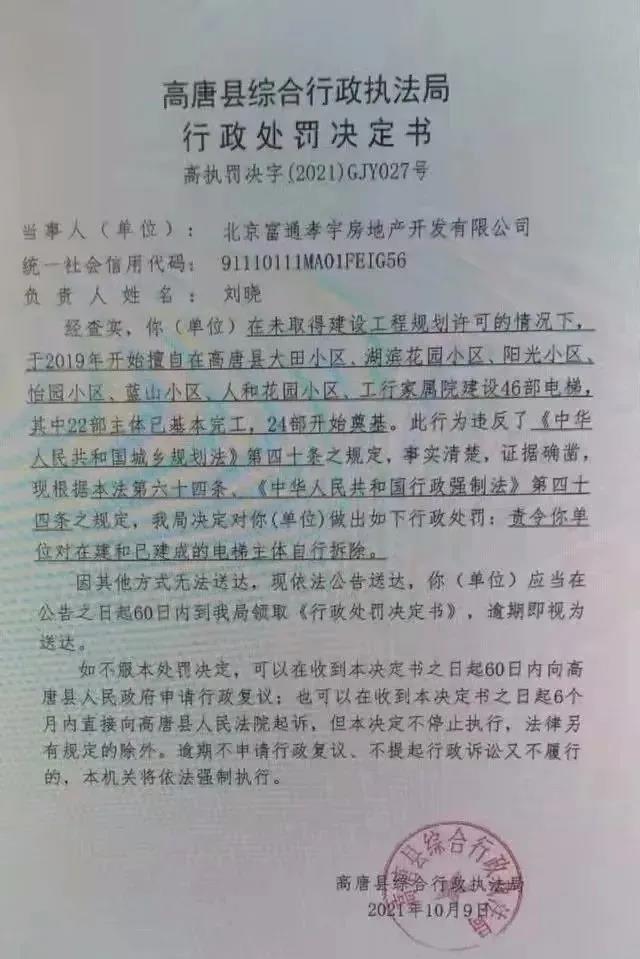 北京富通孝宇房地产开发有限公司自2018年成立以来早已经劣迹斑斑,法人代表刘晓也早已经被列入过失信人名单、限制高消费名单,企业2021年又多次被列入失信名单企业宣传“中国老龄委”授权加装电梯业务也被揭露为虚假宣传,但是就是这样一家劣迹斑斑的公司,居然这几年还在到处搞加装电梯,免费加装电梯、留下了一大堆社会问题。这已经不是简单的合同问题了,而且可能涉嫌犯罪了。